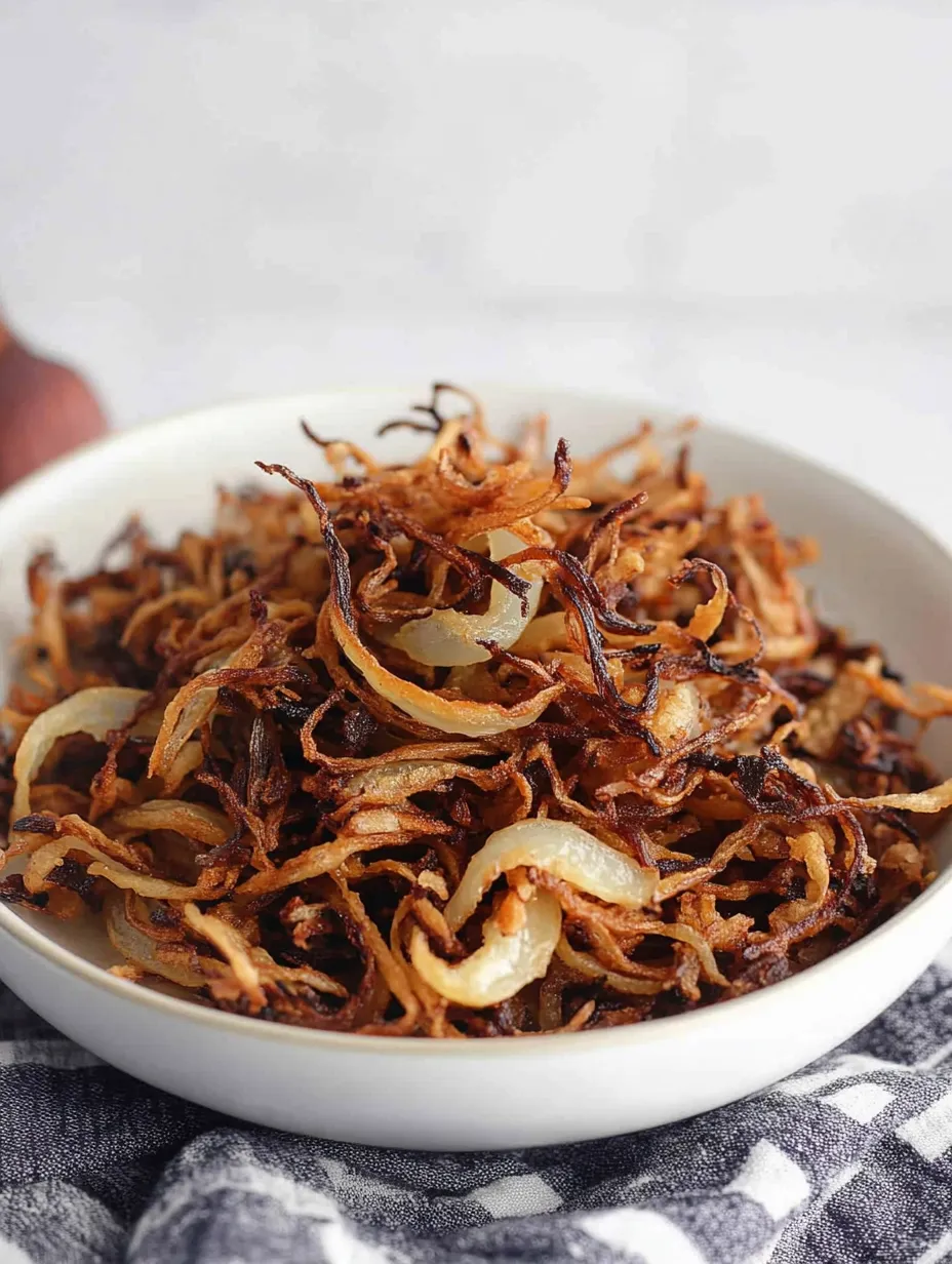 I discovered this technique when trying to recreate my grandmother's biryani toppings without the mess of deep frying. Now my family reaches for these crispy onions to top everything from soups to salads.
